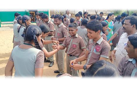 To make this day memorable, a special assembly was conducted for the classes IX to XII. During assembly boys and girls were made to stand facing each other and tied Rakhis. Children were told about the sacred bond between brother and sister by the principal during his special address.