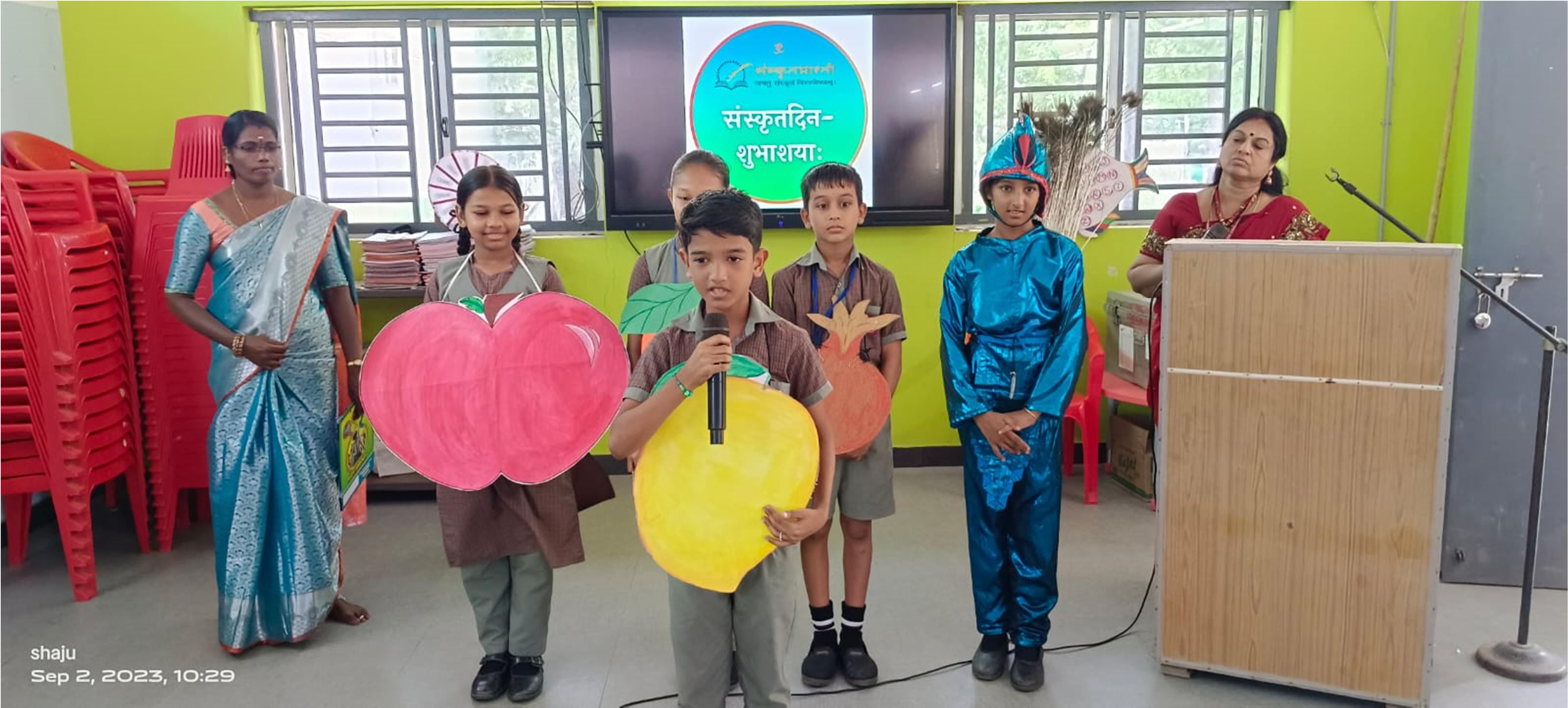 The school students took much pride and joy to display their skills and creativity to spread knowledge about Sanskrit through various performing arts.