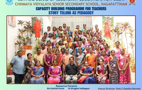 Teachers of class Pre-KG to II (16 teachers) participated an Capacity Building Programme organized by COE, CBSE, Chennai on the topic “Story Telling as a Pedagogy” held at Chinmaya Vidyalaya, Nagapattinam.