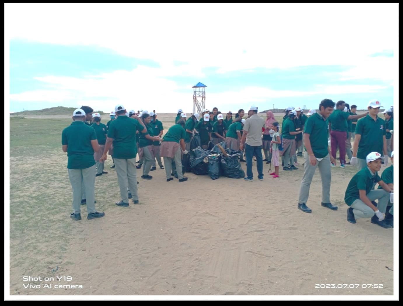 Beach Cleaning: The students, along with other participants, engaged in a thorough beach cleaning exercise. Equipped with gloves, trash bags, and other necessary cleaning tools, they meticulously picked up litter, plastics, and other waste materials from the beach. This activity aimed to restore the pristine beauty of the beach and create a clean and hygienic environment.